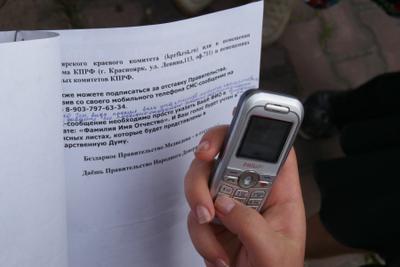 На призыв организаторов митинга отправить СМС-сообщение в пункт сбора подписей за отставку правительства почти все пришедшие на Красную площадь сразу же достали мобильные телефоны. Комсомольцы помогали неопытным пользователям мобильной связи проголосовать за отставку.