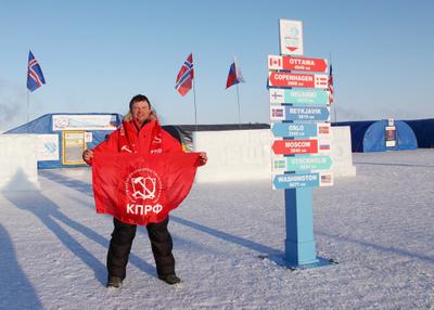 Красные флаги СССР, КПРФ, Тульской области и города Алексин - на Северном полюсе