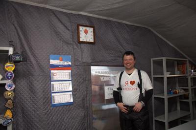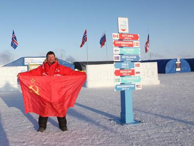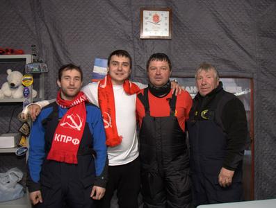 Памятуя о том, что он родом из СССР, коммунист, житель Тульской области и алексинец Ю.Моисеев доставил на станцию красные флаги Советского Союза, КПРФ, Тульской области и своего родного города. Кстати, это было второе появление стяга Компартии на Северном полюсе: 24 апреля 2009 года московские коммунисты высадились на ледовой сезонной базе Барнео и установили там флаг КПРФ и Знамя Победы.