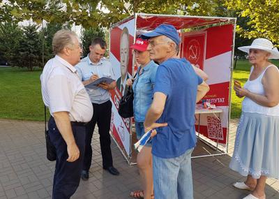 В центре города были установлены переносные агитационные конструкции, так называемые «агитационные кубы», с символикой партии и образом нашего кандидата. А партийный актив Краснодарского городского отделения КПРФ и ЛКСМ РФ агитировал проходящих краснодарцев прийти на выборы 18 сентября и проголосовать за будущее страны в лице КПРФ и ее кандидатов.