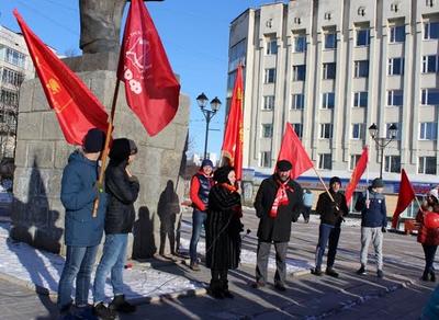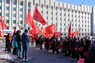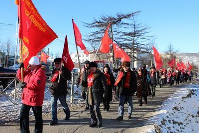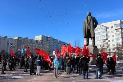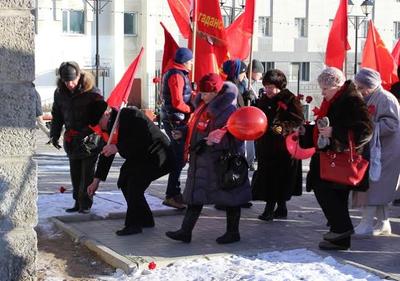 Одними из первых магаданские коммунисты отметили День рождения Великого Октября. Большая колонна, порядка ста человек, с красными знаменами и шарами, гвоздиками и бантами на лацканах прошла по улице Гагарина до площади Космонавтов к памятнику Вождю мирового пролетариата Владимиру Ильичу Ленину.