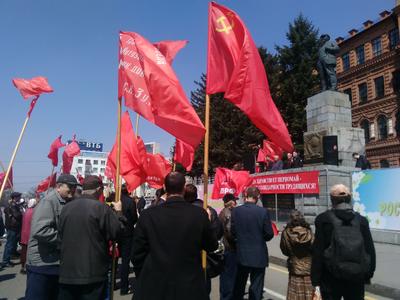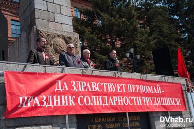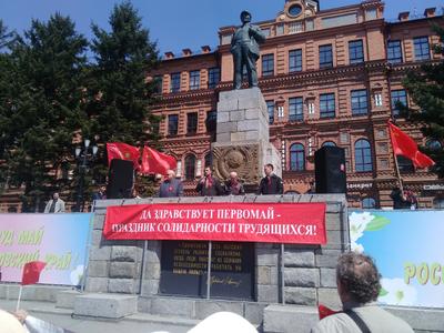 1 мая на площади В.И. Ленина состоялся праздничный митинг, организованный Хабаровским краевым комитетом КПРФ. Хабаровчан и гостей города встречал духовой оркестр, исполнявший революционные и советские песни.