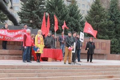 Представитель партии «Рот Фронт» Юрий Ерёмин, обращаясь к участникам митинга, заметил, что капитализм и сопутствующие ему язвы победить можно, но для этого надо приумножить ряды борцов.