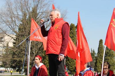 С Днём международной солидарности трудящихся участников первомайской акции поздравил первый секретарь Костромского обкома КПРФ Валерий Ижицкий. Выступающий напомнил об истинном смысле Дня 1Мая – символа борьбы трудящихся за свои права и подчеркнул, что сегодня вновь назрела необходимость бороться-бороться за социальную справедливость, против нищеты, роста цен и тарифов, за достойные зарплаты, пенсии, чтобы не было обманутых дольщиков. «Нас сегодня здесь не так много, но на нашей стороне правда, а народ, объединённый вокруг правды, способен заставить власть его услышать!»,- отметил Валерий Ижицкий.