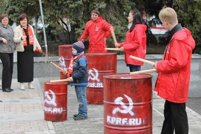 Пензенцы разворачивали красные флаги, плакаты и транспаранты, общались между собой, фотографировались. При входе на площадь молодые коммунисты били в импровизированные барабаны, которые сделали из жестяных бочек. Для самых маленьких участников митинга была своя маленькая бочка, по которой от души лупили ребятишки. Митингующих постарше развлекал настоящий военный оркестр. Где-то в толпе женщины окружили гармониста и пели советские песни. Чувствовался настоящий, а не показной, как у “единороссов” и профсоюзов, праздник.