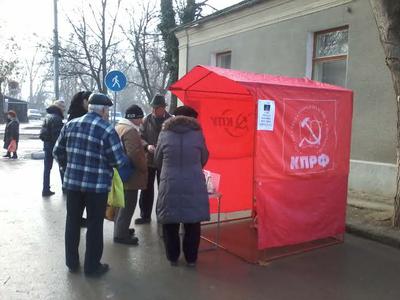 Ежедневно на центральном рынке города выставляется агитпост КПРФ, куда белогорцы приносят вещи, продукты, деньги, обувь.