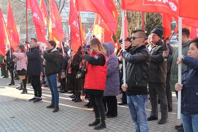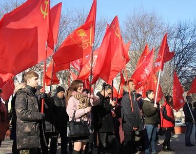 Руководители Крымского республиканского комитета, коммунисты и комсомольцы, члены Союза Советских офицеров, дети войны и сторонники КПРФ вышли на митинг на площадь Советскую возле памятника «Выстрел в спину», установленного крымскими коммунистами пятнадцать с половиной лет назад в память о тех гражданах, которые погибли от рук пособников фашистов и так же собой являют пример героизма, где поздравили горожан с праздником, вручили партийные и комсомольские билеты.