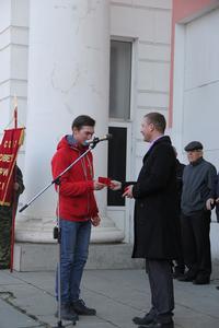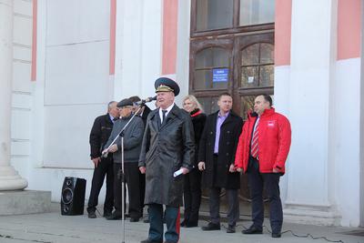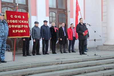 С приветственным словом митинг открыл первый секретарь Крымского республиканского комитета КПРФ, руководитель фракции КПРФ в Государственном совете РК Богатыренко Сергей Васильевич. Поздравил ветеранов и офицеров и призвал поддержать предложения Коммунистической партии Российской Федерации по созданию справедливой Конституции и Правительства народного доверия!