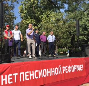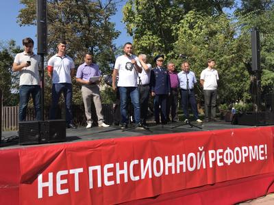 Краснодар. В Краснодаре прошел организованный крайкомом КПРФ митинг против так называемой пенсионной реформы и всего социально-экономического курса партии власти. Местом проведения, после сложных согласований с чиновниками из городской администрации, стал сквер «Вишняковский».