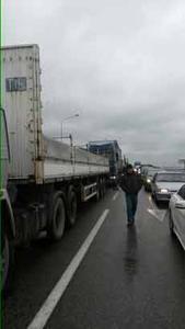 В Краснодарском крае на федеральных трассах дальнобойщики также устроили забастовку - стояли на обочинах или в течение часа фуры передвигались со скоростью 10 километров в час, собирая огромные пробки. На трассе Краснодар-Кропоткин даже произошло "закупоривание" дороги.