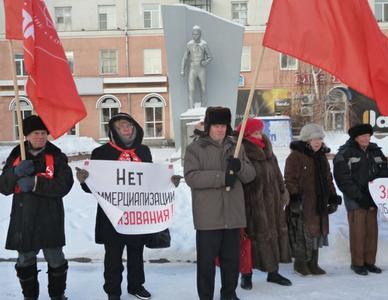 Несмотря на двадцативосьмиградусный мороз, на пикет собралось около 30 членов и сторонников КПРФ, которые высказались против коммерциализации образования, в поддержку высшего и среднего образования, за строительство новых школ и детских садов, за достойную зарплату педагогам. Они поддержали альтернативный законопроект КПРФ «Образование – для всех», как наиболее отвечающий интересам образовательного сообщества, родителей и учащихся.
