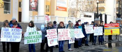 А непосредственным поводом стало решение городских властей, которые несколько месяцев назад выделили областной общественной организации «Диабетическое общество Курганской области» помещение, а некоторое время назад его же и отобрали, выселив общество под предлогом вселения туда городского Управления капитального строительства. И хотя после переговоров вопрос о помещении был решен, руководители организации все же решили выйти на санкционированную акцию, чтобы привлечь внимание общественности к своим многочисленным проблемам.