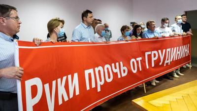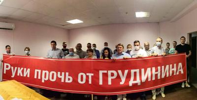 В связи с тотальным запретом на проведение любых массовых мероприятий из-за пандемии коронавируса акция в поддержку П.Н. Грудинина, которого по надуманным причинам сняли с выборов в Государственную Думу, состоялась в помещении. Участники семинара развернули лозунг «Руки прочь от Грудинина!».