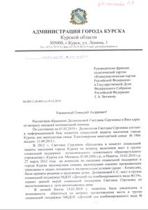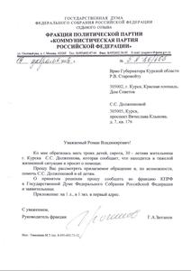Фракция КПРФ в Госдуме выражает признательность Администрации Курска за внимательное рассмотрение депутатского обращения и оказание помощи многодетной малоимущей семье.
