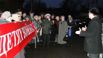 Морально, да и физически трудно было депутатам Курской областной Думы пробираться на рабочие места 19 декабря. Дети войны, которых собралось у здания Думы немало, стихийно перекрыли дорогу. Бедно одетые, практически нищие, они неуютно мостились у дорогущих автомобилей, на которых вот уже 20 лет капиталистического беспредела разъезжают “слуги народа”.