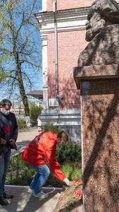 Собравшиеся возложили алые гвоздики к подножию памятника К. Марксу.