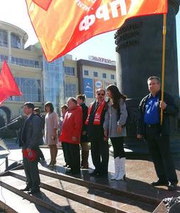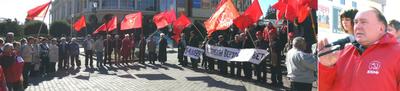 - Более 20 лет назад в Москве произошло народное восстание против насаждаемого движения к капитализму, против воровства и коррупции. Погибло много замечательных людей-патриотов России,кровавые палачи чёрного октября, господа либералы из «пятой колонны» сегодня презираемы народом собственной страны. Они уже осуждены судом истории, но мы уверены: их ещё ждёт и человеческий суд, и заслуженное наказание. – сказал, выступая на митинге второй секретарь Курского ОК КПРФ, руководитель фракции КПРФ в Курской областной Думе А.Н. Анпилов. - Но жертвы тех, кто любил Россию, кому дорога была Советская власть, были не напрасны. Новая власть вынуждена была с оглядкой проводить свой курс на создание слоя олигархов. Уже через год на Красную площадь Курска на митинг вышло 5 тысяч коммунистов и патриотов, которые не побоялись сказать «нет» ельцинскому режиму. Депутаты-коммунисты не на словах, а на деле доказывают, что они защищают интересы народа. Мы, депутаты-коммунисты, голосовали против сбора на капремонт, против повышения транспортного налога, за льготы для детей войны. Но «единороссов» в законодательных органах всех уровней значительно больше, и социально значимые законопроекты коммунистов не проходят. Сегодня у коммунистов помимо лозунга «За достойную жизнь» есть и политические: «Власть и собственность народу!», «Даешь Правительство народного доверия!».