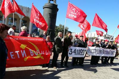 «Нет прощения палачам!», «Не забудем, не простим!», «Наше дело правое!», «России — Советскую власть!», - скандировали митингующие по призыву лидера курских коммунистов Н.Н. Иванова.