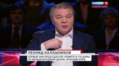 Секретарь ЦК КПРФ, первый заместитель председателя Комитета ГД по международным делам Л.И.Калашников 16 марта с.г. принял участие в программе ТВ Россия 1 "Вечер с Владимиром Соловьевым" о годовщине воссоединения России и Крыма.