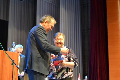 В зале собралось около двухсот человек. Началось мероприятие с награждения медалями “Дети войны” коммунистов, ветеранов партии. Леонид Иванович лично вручал медали, но, к сожалению, не все награждаемые смогли присутствовать.