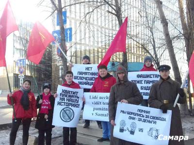 Напомним, всё началось в начале 2000-х годов. В рамках выполнения «Соглашения о взаимном содержании воинских захоронений»,заключённого Россией с Чешской Республикой,и реализации чешского проекта «Легион 100», в населённых пунктах нашей страны был запущен процесс установки памятников белочехам, погибшим в годы Гражданской войны, на пути их следования от Пензы до Владивостока. Очередь Самары настала в 2007 году. 1 июня 2007 года Комиссией по увековечиванию памяти выдающихся личностей и исторических событий г.о. Самара было принято Постановление №6 «Об установке барельефа на здании кафе «Три вяза» «В память чешских легионеров». Далее, согласно Постановлению мэра Самары Виктора Тархова,барельеф плавно превратился в памятник, который должны были установить на ул. Красноармейской, в непосредственной близости от памятника красноармейцам, расстрелянным белочехами в 1918 году. После этого началась серьёзная работа по противодействию установке данного памятника. Коммунистами и комсомольцами Железнодорожного района г. Самары, а затем и всей Самарской области были проведены несколько сотен протестных акций: от одиночных пикетов до крупных митингов; организовано четыре круглых стола с привлечением историков и общественности; подготовлены и опубликованы материалы о чехословацком мятеже и его жертвах на страницах газеты «Трудовая Самара», в социальных сетях и сети Интернет. Помимо этого, при активной поддержке местных жителей, проходил сбор подписей против установки памятника белочехам. Параллельно шла интенсивная работа депутатов фракций КПРФ в Государственной, Самарской Губернской и городской Думах. Десятки запросов в различные инстанции Администрации Самары и Правительства Самарской области помогли установить факт юридической неправомерности установки памятника. В поддержку самарских товарищей Президиумом ЦК КПРФ было принято заявление «В России нет места для памятников оккупантам». В связи с ярым сопротивлением коммунистов и местных жителей против установки памятника белочехам в Самаре, чешской стороной и её российскими сторонниками была предпринята попытка установки аналогичного памятника в Новокуйбышевске на станции Липяги. Но и она была отбита.