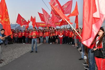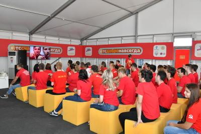 3 августа делегация ЦК КПРФ на молодежном форуме «Территория смыслов на Клязьме – 2018» встретилась с комсомольским активом. Во встрече приняли участие заместители Председателя ЦК КПРФ Ю.В. Афонин и Д.Г. Новиков, Председатель Всероссийского женского союза «Надежда России», Руководитель аппарата фракции КПРФ в Государственной Думе Н.А. Останина, Руководитель пресс-службы ЦК КПРФ А.А. Ющенко, депутат фракции КПРФ в Государственной Думе О.А. Лебедев, секретарь ЦК КПРФ, первый секретарь ЛКСМ РФ Владимир Исаков.