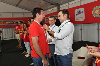 Затем ряду молодежных лидеров были вручены памятные медали в честь 100-летия ВЛКСМ. Завершилась встреча дружным скандированием всего зала: «Ленин! Партия! Комсомол!»