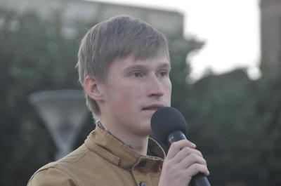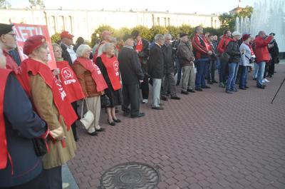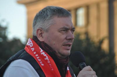 Перед началом митинга артист театра и кино, кандидат в депутаты городского парламента Р.И. Эйвазов исполнил полюбившийся многим участникам протестных акций КПРФ «Гимн коммунистов Ленинграда».