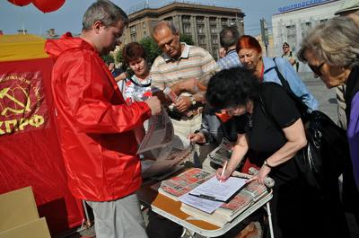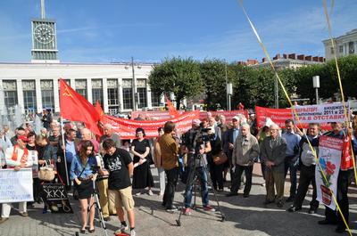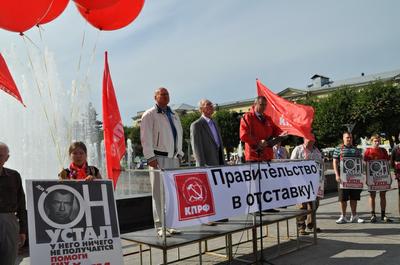 Порядка пятисот человек вышли 31 августа 2013 года на площадь Ленина на организованный Санкт-Петербургским городским отделением КПРФ митинг в поддержку инициативы по отправке в отставку действующего правительства страны, с которой выступила фракция коммунистов в Государственной Думе ФС РФ.