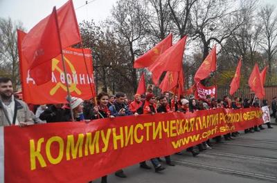 Свыше трех тысяч человек 7 ноября 2015 года приняли участие в праздничных шествии и митинге по случаю 98-й годовщины Великой Октябрьской социалистической революции, организованных Санкт-Петербургским городским отделением КПРФ.