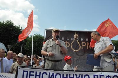 Открылся митинг выступлением члена ЦК КПРФ, депутата Государственной Думы ФС РФ В.В. Бортко, который назвал инициативу о повышении пенсионного возраста законом против пожилых граждан. «Этот закон направлен против вас. В советское время было такое понятие «враг народа». А что делали с врагами народа? Пора вспомнить!», - призвал Владимир Бортко. Он также подчеркнул, что закон станет ударом ещё и по молодежи, среди которой резко увеличится безработица.