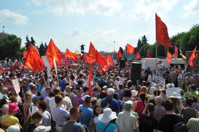 28 июля 2018 года на площади Ленина в северной столице состоялся митинг против повышения пенсионного возраста, организованный КПРФ совместно с целым рядом общественно-политических движений, организаций и профсоюзных объединений.