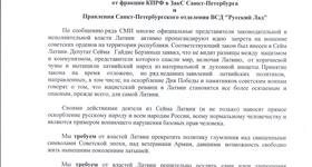 Обращение к властям Латвииот фракции КПРФ в ЗакС Санкт-Петербурга и Правления Санкт-Петербургского отделения ВСД "Русский Лад".