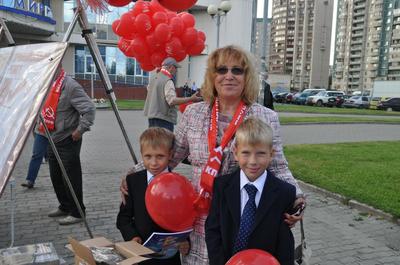 Ленинградские коммунисты поздравили первоклассников у Ледового дворца
