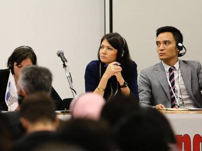 В своём выступлении председатель НСП «Дискурс» Анастасия Байбикова рассказала об объединении студенческих и рабочих профсоюзов на XIX Всемирном фестивале молодёжи и студентов. Кроме того, докладчик уделила особое внимание деятельности профсоюзов в России. Большинство из них - как трудовые, так и студенческие - зависимые, так называемые «жёлтые» профсоюзы, являются инструментом буржуазии, которые в нужный момент всегда поддерживают действующую власть, а не трудовой народ. Поэтому трудящиеся, особенно молодые рабочие и студенты, перестают верить профсоюзам в том, что они смогут их защитить. Отсюда и такое положение дел: количество трудовых протестов в России с каждым годом растёт (из-за невыплат зарплат, каторжных условий работы на крупных предприятиях монополистов, перевод на неполный рабочий день и т.д.), но всё больше акций происходит стихийно, без участия профсоюзов.