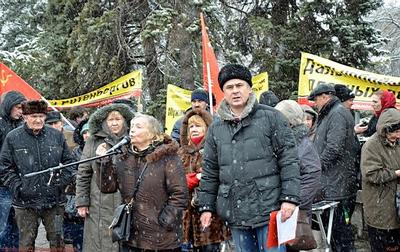 Митинг в рамках всероссийской акции протеста в Ростове-на-Дону несмотря на нулевую температуру, непрекращающийся снегопад и почти недельную активность средств массовой информации, призывавших ветеранов труда не участвовать в митингах коммунистов, собрал возле памятника В.И. Ленину на Большой Садовой около тысячи участников.