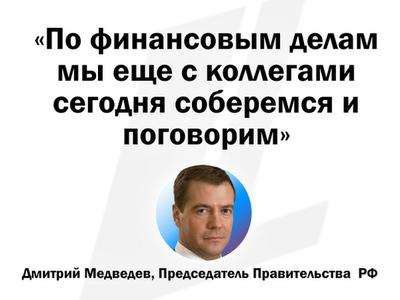 Премьер-министр РФ Дмитрий Медведев проводит совещание по финансово-экономической ситуации в РФ.