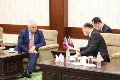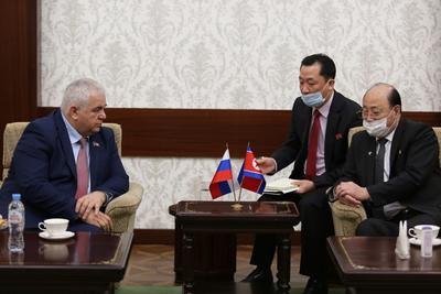 8 октября 2020 года в Посольстве КНДР состоялась рабочая встреча секретаря ЦК КПРФ, Первого заместителя Председателя ЦС СКП-КПСС, заместителя Председателя Комитета Государственной Думы по делам СНГ, евразийской интеграции и связям с соотечественниками, координатора депутатской группы Государственной Думы по связям с Парламентом КНДР Казбека Куцуковича Тайсаева с Чрезвычайным и Полномочным Послом Корейской Народно-Демократической Республики в Российской Федерации Син Хон Чхолем.