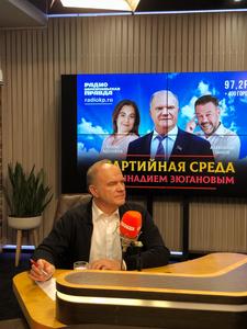 Вчера Председатель ЦК КПРФ Геннадий Зюганов в прямом эфире радио «Комсомольская правда» в рамках программы «Партийная среда» поговорил со своими соведущими, спецкором «Комсомолки» Александром Гамовым и Еленой Афониной, о насущных и животрепещущих проблемах.
