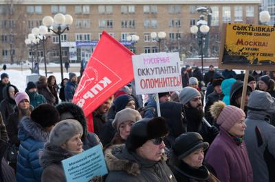 Несмотря на морозную погоду в Сыктывкаре на митинг, организованный Коми рескомом КПРФ, пришло порядка 400 человек. Самодельные плакаты – «Мусорные оккупанты, опомнитесь!», «Сохраним наш край ради детей», «Мы против свалки» красноречиво свидетельствовали о боевом настрое собравшихся.