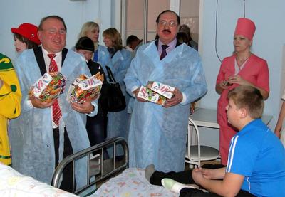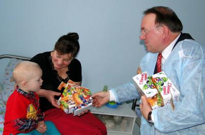 Поскольку праздник проходил накануне обеда, подарки ребятам решили вручать в палатах – после обеда.