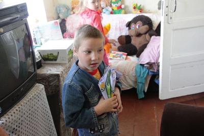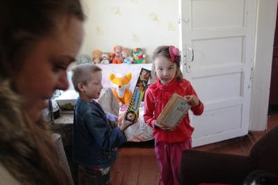 По своему обыкновению она приехала в гости с подарками. Тут были и игрушки для малышей, продукты, одежда, ранцы и канцтовары для учеников.