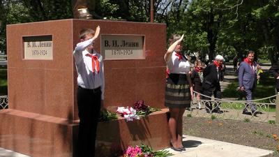 Затем пионеры возложили цветы к памятнику В.И. Ленину.