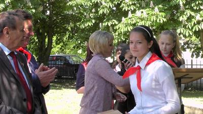 После рапортов командиров пионерских отрядов и награждения активистов почти тридцать младших школьников принесли присягу.