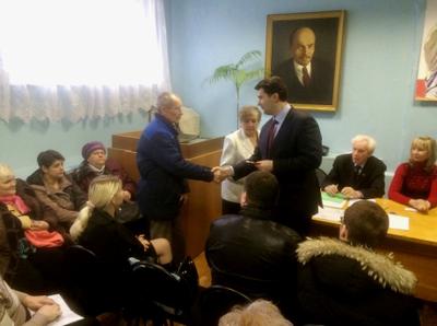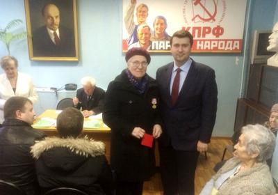 На мероприятии Олег Лебедев ответил на вопросы коммунистов, а также вручил членам Привокзального райкома медали ЦК КПРФ «Дети войны».