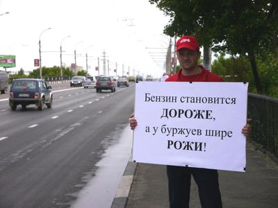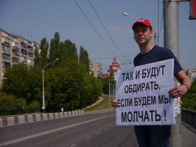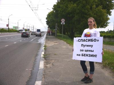 Комсомольцы и коммунисты Липецка 5 июня провели серию одиночных пикетов с лозунгами против повышения цен на топливо.