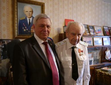 Липецк. Н.В. Разворотнев вручил памятную медаль ЦК КПРФ легендарному летчику-фронтовику А.С. Кириллову