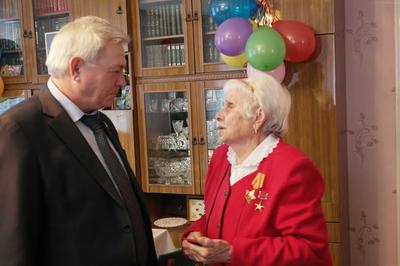 Липецкая область. Депутат ГД РФ Н.В. Разворотнев поздравил с юбилеем Героя Соцтруда Е.С. Верзилину