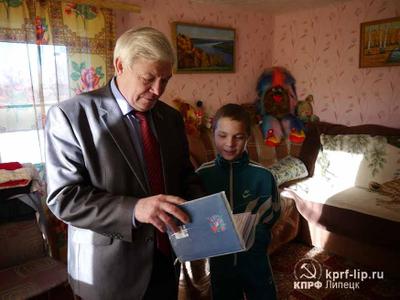 Липецкая область. Депутат Госдумы Н.В. Разворотнев передал школьнику из Добринки подарок от Г.А. Зюганова