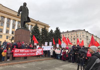 6 ноября в г. Липецке состоялись праздничная демонстрация и митинг в честь 100-летия Великой Октябрьской социалистической революции. Колонны, украшенные алыми флагами, шарами, огромной копией знамени Советского Союза, транспарантами и другой атрибутикой КПРФ, прошли по главным улицам Липецка до пл. Ленина, где состоялся митинг.